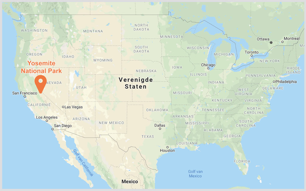 Yosemite National Park ligt op drie uur rijden van San Francisco. Jaarlijks komen hier meer dan drie miljoen bezoekers. Het park is duizenden jaren geleden gevormd door een gletsjer en ligt middenin de Sierra Nevada. Hoogtepunten zijn de hoge watervallen, de Half Dome en het spectaculaire uitzicht vanaf Glacier Point.
