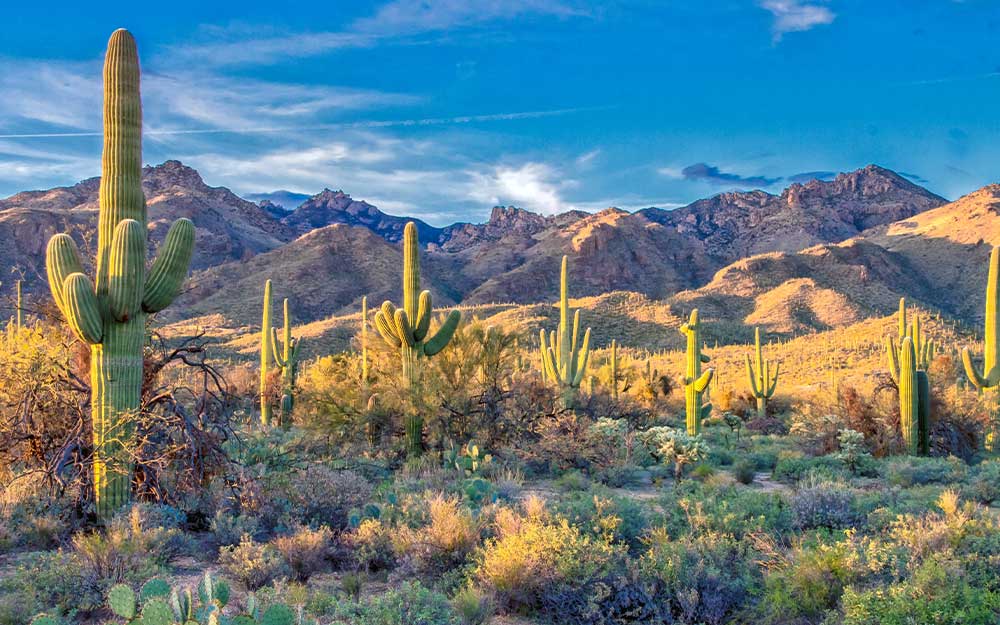 Het Santa Catalina-gebergte ligt in de staat Arizona. In 1853 kochten de Amerikanen deze bergketen van de Mexicanen om een spoorlijn aan te leggen, wat ook wel bekend staat als de ‘Gadsdenaankoop’. Tegenwoordig wandel je in dit gebergte in Amerika door verschillende dennenbossen en beklim je grote bruine rotsen met hier daar een saguaro.