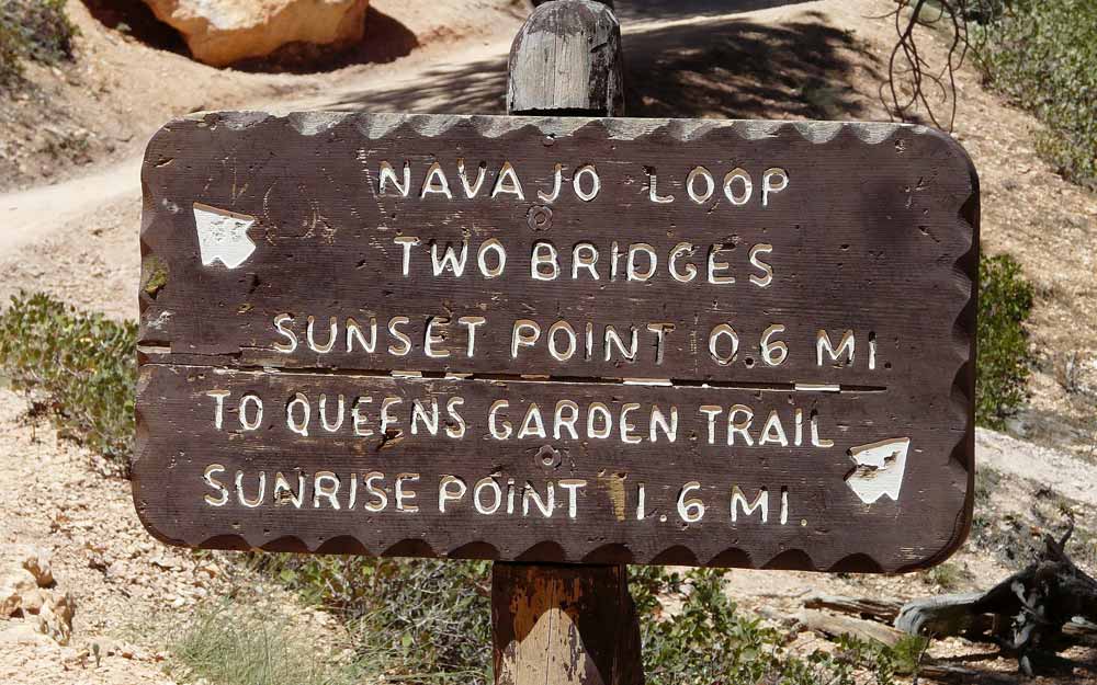 Navajo/Queen's Combination: Dit is een combinatie van de Navajo Trail en de Queen’s Garden Trail. Door middel van een verbindingspad over de bodem van de kloof voert dit pad je door een bos van dennen en junipers. Het beginpunt is bij Sunset of Sunrise Point. Round trip: bijna vijf kilometer.